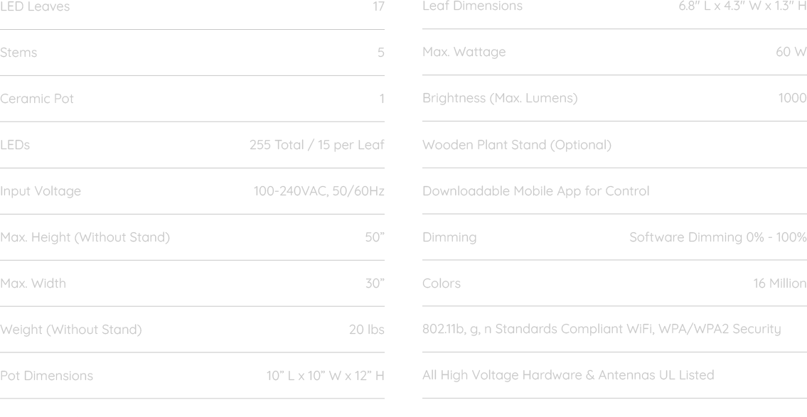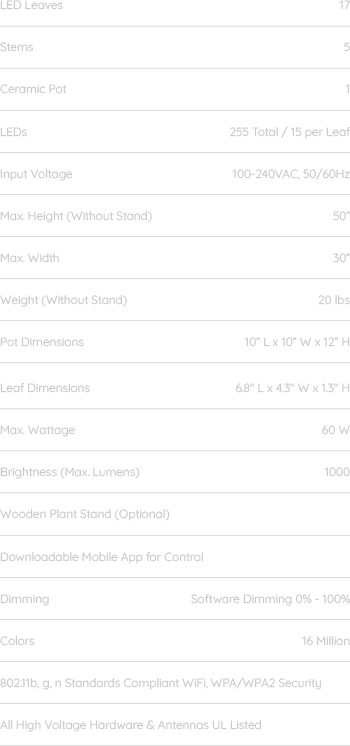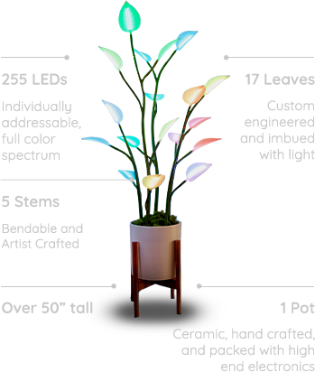 With PixelAir, every LED on every leaf and stem is mapped in physical space, creating a true 3D Lighting product with a 360 degree display angle.