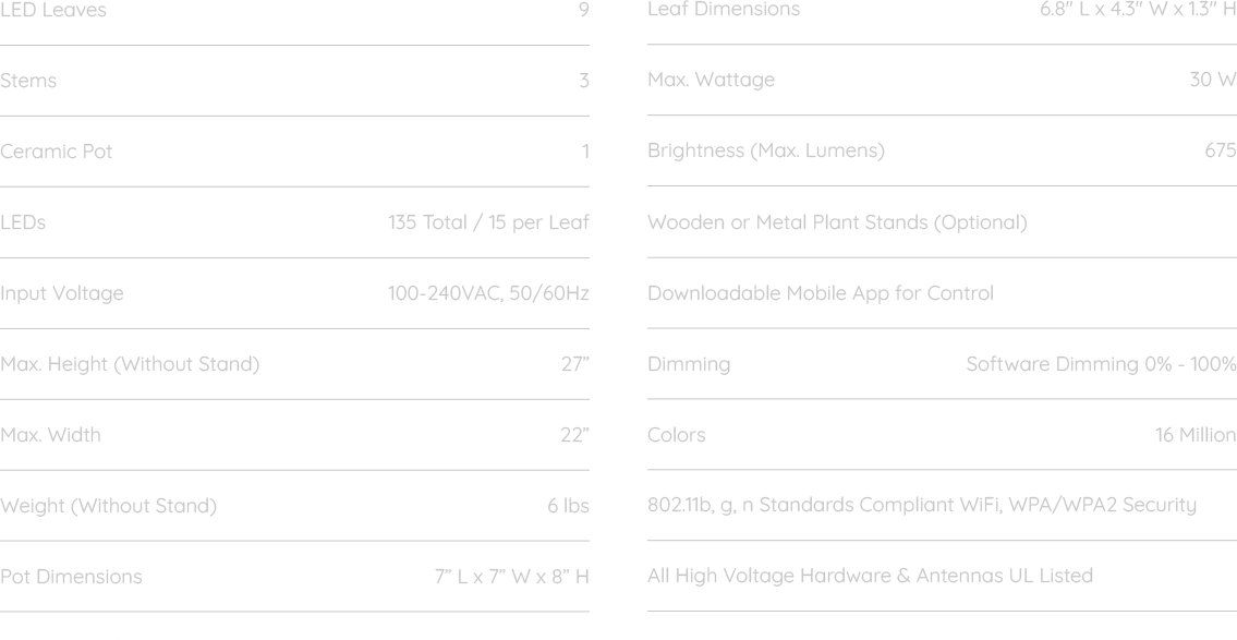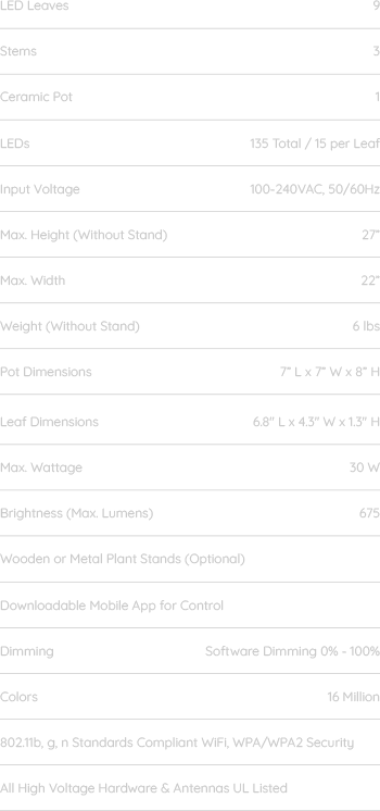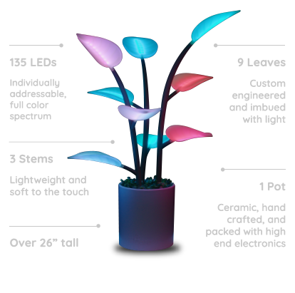 With PixelAir, every LED on every leaf and stem is mapped in physical space, creating a true 3D Lighting product with a 360 degree display angle.