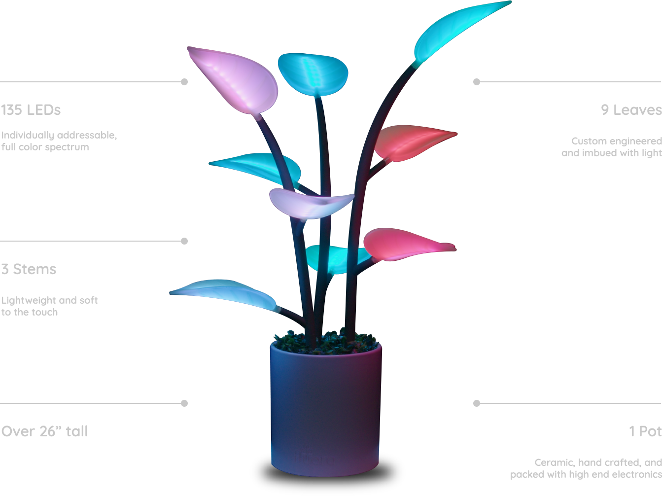 PixelAir allows Fluora to swirl and pulse to life with mesmerizing content in over 16 million color combinations, all controlled by your phone.