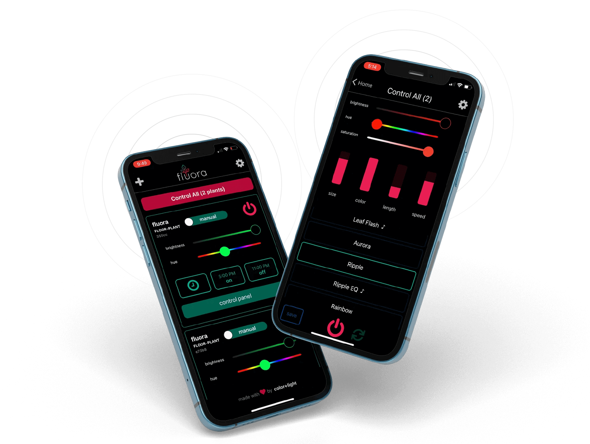 If Fluora is a canvas, the app is your paintbrush. Use it to explore our library of custom animations, and fine-tune your favorites. Sync Multiple Fluora together with ease. All through the connection on your home WiFi network.